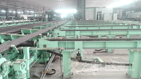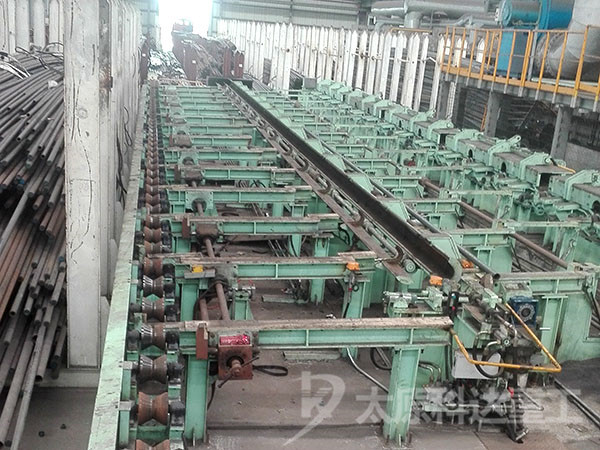 鋼管精整生產(chǎn)線包括從矯直工序開始到包裝入庫(kù)為止的矯直、吹灰、鋸切、探傷、人工檢驗(yàn)、噴標(biāo)、堆垛、打包整個(gè)工藝過程,是為了提高設(shè)備利用率降低設(shè)備投資,確保物流的暢通,減少生產(chǎn)過程中不必要的浪費(fèi)。將原先分片、分區(qū)的單線生產(chǎn)作業(yè)進(jìn)行連線布置,采用全自動(dòng)化控制。將不合格、缺陷產(chǎn)品自動(dòng)分選剔除單獨(dú)收集,各個(gè)單臺(tái)設(shè)備即可連線作業(yè)也可單獨(dú)作業(yè)。